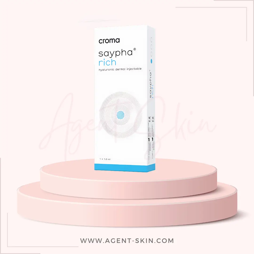 saypha rich ผลิตโดย croma ออสเตรีย บริษัทชั้นนำที่มีประสบการณ์กว่า 40 ปี ในการผลิตไฮยาลูรอนิกแอซิดคุณภาพ ซึ่งเป็นลิขสิทธิ์เฉพาะของ croma เพื่อให้ได้ ha ชนิด non-animal origin บริสุทธิ์สูง! จึงลดความเสี่ยงจากอาการแพ้ ha ปรับตัวเข้ากับร่างกายได้อย่างเป็นธรรมชาติและมีความปลอดภัยสูง! จึงทำให้คุณมั่นใจ glow skin filler สามารถจัดการกับปัญหาผิวได้อย่างเต็มประสิทธิภาพ! ยิ่งคุณสั่งซื้อฟิลเลอร์งานผิวมาตรฐานอย.ไทยจาก agent-skin คุณยิ่งวางใจ ได้รับผลิตภัณฑ์ของแท้ 100% และเสียงผู้ใช้ saypha rich รีวิวส่วนใหญ่บอกตรงกันว่า มีความมั่นใจขึ้นกว่าเดิม!
